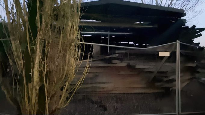 L’ultimo crollo, nelle scorse ore, ha compromesso anche lo scheletro originario della struttura. A rimanere in piedi è soprattutto l’ossatura metallica, mentre il resto appare ormai irrecuperabile. L’area è delimitata.