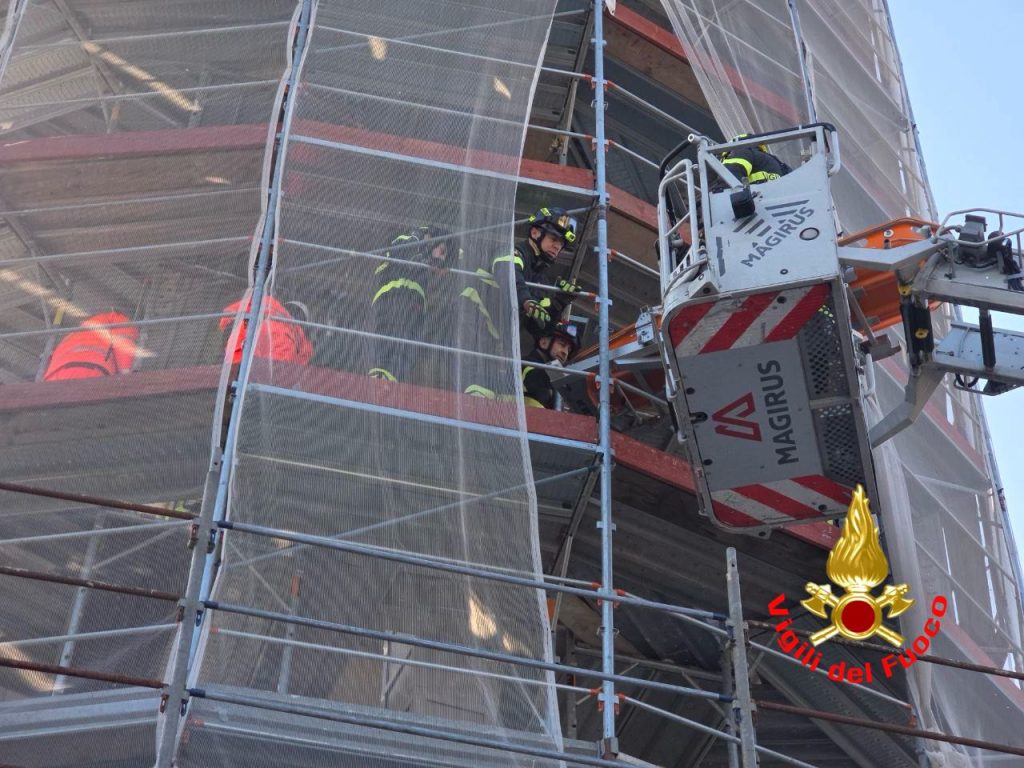 Sul posto sono intervenuti anche i Carabinieri, che hanno effettuato i rilievi per chiarire la dinamica dell’accaduto e verificare il rispetto delle misure di sicurezza sul cantiere. Le indagini sono in corso.