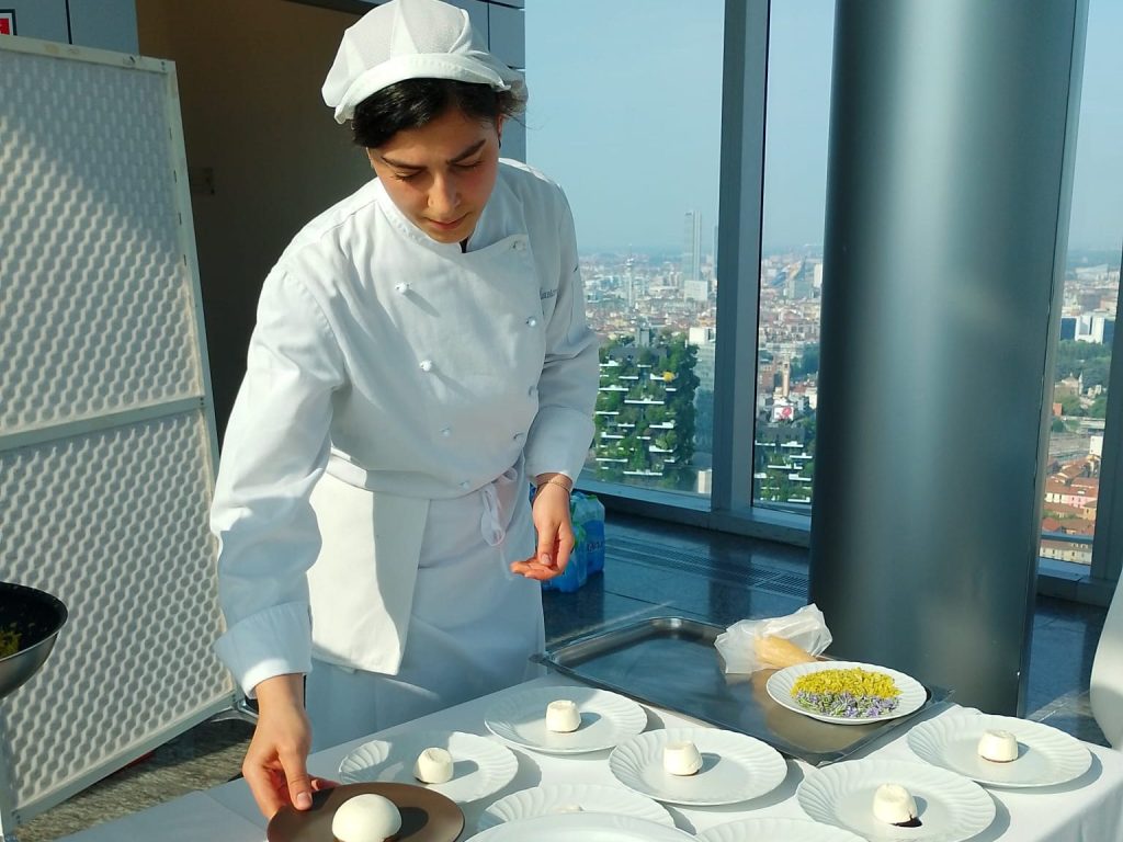 La competizione si è svolta nella suggestiva cornice del Palazzo Lombardia, al Belvedere Berlusconi, al 39° piano, con Milano ai piedi e una giuria d’eccezione. In giuria c’erano Stefania Moroni, Ceo di Aimo e Nadia e figlia dei fondatori, Alessandro Negrini, Chef Patron del ristorante e l’altro responsabile del locale, lo chef Fabio Pisani.