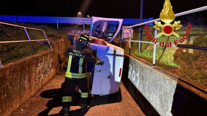 Paura nella notte tra giovedì e venerdì in viale Toscana a Lodi Vecchio, dove un furgone è uscito di strada incastrandosi in un sottopasso pedonale e ribaltandosi su un fianco. L’incidente è avvenuto alle 4.33 e ha richiesto l’intervento dei Vigili del Fuoco del Comando provinciale di Lodi.