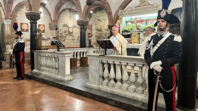 Un momento di preghiera e riflessione che ha idealmente riunito tutti i Carabinieri attorno alla loro protettrice. Il culto della “Virgo Fidelis” affonda le sue radici nel secondo dopoguerra: fu infatti S.E. Mons. Carlo Alberto Ferrero di Cavallerleone, Ordinario Militare d’Italia, a promuovere la devozione, sostenuta poi dal Comandante Generale dell’Arma, che indisse un concorso artistico per raffigurare la Vergine. L’opera scelta, realizzata dallo scultore e architetto Giuliano Leonardi, ritrae Maria illuminata da una lampada mentre legge il passo dell’Apocalisse “Sii fedele sino alla morte” (Ap 2,10), richiamo diretto al motto dell’Arma: “Nei secoli fedele”.