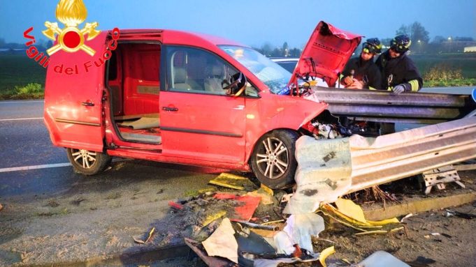 Brutto incidente questa mattina alle 7:00 lungo la provinciale Sp235, all’altezza del benzinaio BC a Lodi. Un furgone si è schiantato contro il guardrail, distruggendo la parte anteriore del mezzo e rimanendo incastrato nella barriera metallica. L’impatto ha provocato la dispersione di detriti sull’asfalto e il danneggiamento del tratto di protezione stradale.