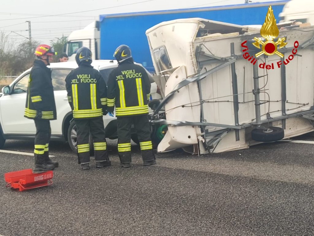 I Vigili del Fuoco si sono occupati della messa in sicurezza dei mezzi coinvolti e dell’intera area dell’incidente. L’autostrada è rimasta chiusa per circa 30 minuti, causando rallentamenti temporanei alla circolazione.