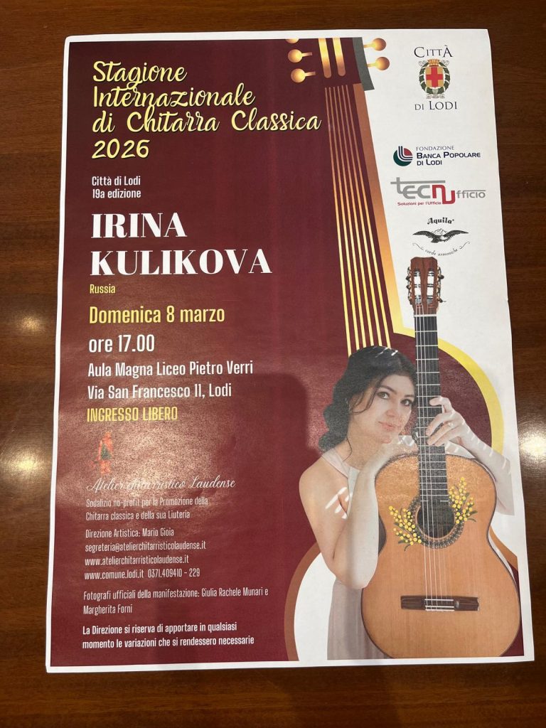 La rassegna, promossa dall’Atelier Chitarristico Laudense e sostenuta dalla Fondazione Banca Popolare di Lodi insieme al Comune, si svolgerà tra l’Aula Magna del Liceo Pietro Verri e il Tempio Civico dell’Incoronata. Tutti i concerti saranno a ingresso libero e gratuito.