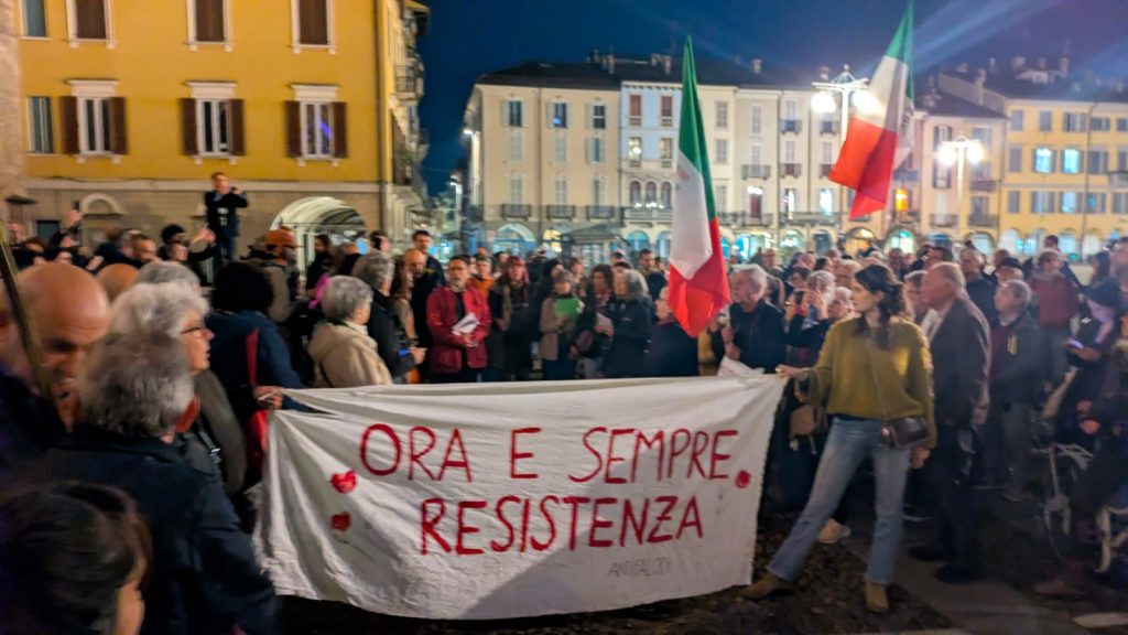 Una piazza viva, attraversata da voci, cartelli e prese di posizione nette. A Lodi, ieri sera, mentre in un bar della città si teneva un incontro sulla cosiddetta ‘remigrazione’, piazza della Vittoria ha ospitato un presidio antifascista partecipato e sentito.