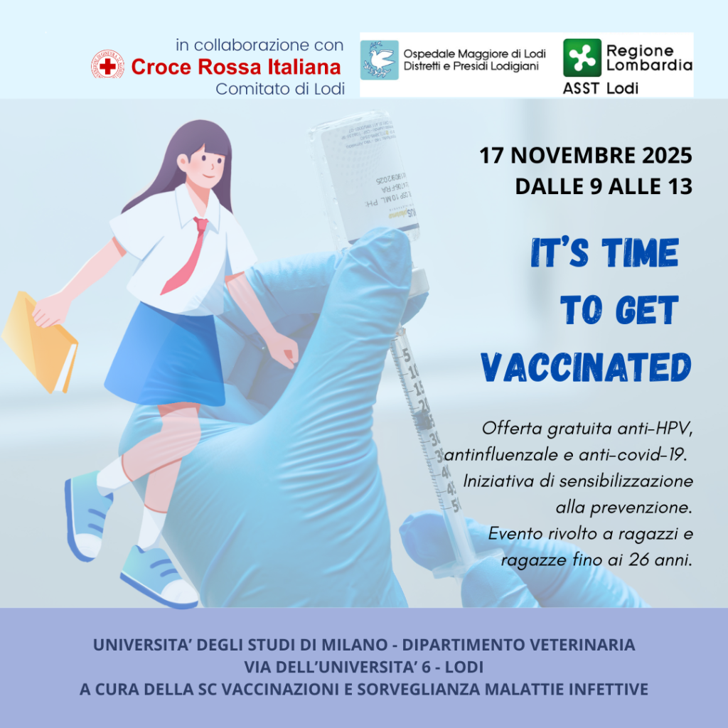 In occasione della Giornata Internazionale per l’eliminazione del Tumore della Cervice Uterina, anche quest’anno la SC Vaccinazioni e Sorveglianza Malattie Infettive promuove un’iniziativa di prevenzione rivolta ai giovani e alla cittadinanza. Lunedì 17 novembre, dalle 9 alle 13, nel cortile della Facoltà di Medicina Veterinaria di Lodi (via dell’Università 6) sarà attivo un ambulatorio vaccinale mobile per la somministrazione del vaccino anti-HPV in accesso libero.