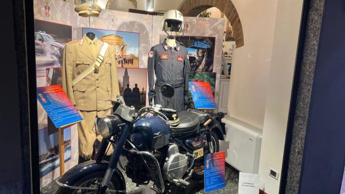 - Carabinieri nei secoli, con pezzi unici come la grande uniforme speciale da colonnello dei Carabinieri Reali (1900-1923), la uniforme da gala, la divisa dei Corazzieri del Presidente della Repubblica e una Moto Guzzi Falcone 500 degli anni Settanta, accanto alle uniformi moderne dell’Arma.