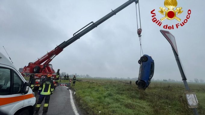 Intervento di soccorso nella tarda mattinata di oggi sulla SP17, nel territorio di Salerano sul Lambro, dove una vettura è uscita di strada finendo in un fossato. L’allarme è scattato alle 12.12: sul posto il Comando Provinciale dei Vigili del Fuoco di Lodi ha inviato due autopompe (APS) e un’autogrù (AG).
